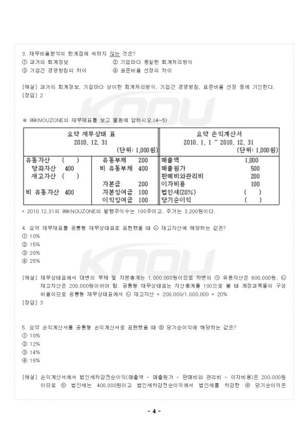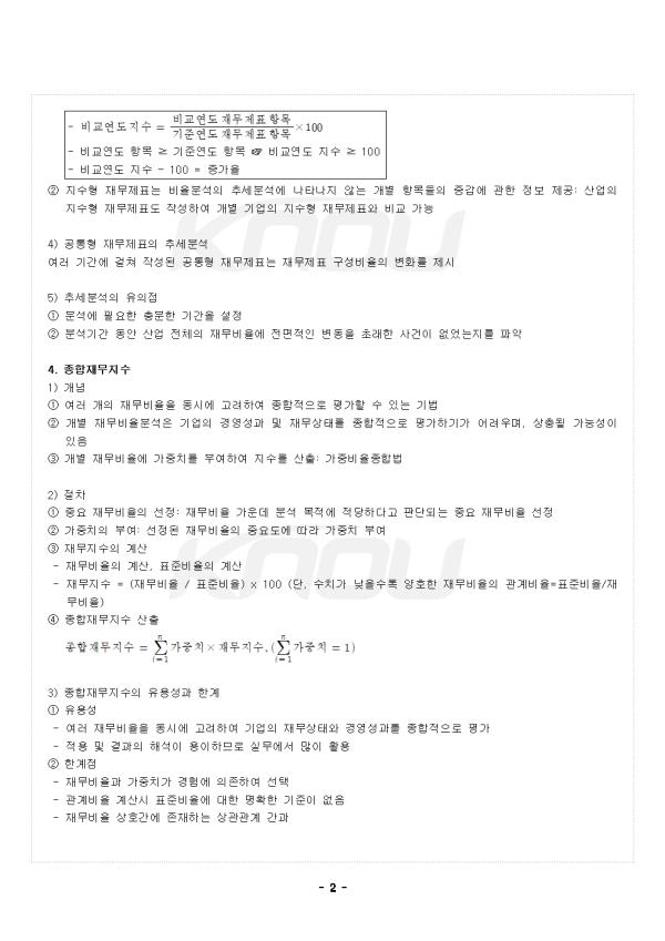 2. Áõ°¨Çü À繫Á¦Ç¥ ¨ç Àü±âÀÇ °èÁ¤°ú¸ñ¿¡ ´ëÀ™ ´ç±âÀÇ °èÁ¤°ú¸ñÀÇ º¯È¸¦ Á¾ÇÕÀûÀ¸·Î ÆÄ¾ÇÇϴµ¥ À¯¿ë - Áõ°¨¾× À繫Á¦Ç¥: ´ç±â °èÁ¤°ú¸ñ ±Ý¾×¿¡¼ Àü±â °èÁ¤°ú¸ñ ±Ý¾×À» Â÷°¨ - Áõ°¨·ü À繫Á¦Ç¥: °¢ °èÁ¤°ú¸ñÀÇ Áõ°¨¾×À» Àü±â °èÁ¤°ú¸ñ ±Ý¾×À¸·Î ³ª´©¾î ÀÛ¼º ¡æ ¼ºÀ强ºñÀ²°ú µ¿ÀÏ ¨è ±â¿©À²°ú ±â¿©µµ - ÀÚ»êÁõ°¡±â¿©À²(%): ÀÚ»ê Áõ°¨¾× ´ëºñ °èÁ¤°ú¸ñ Áõ°¨¾× ºñÀ² - ÀÚ»êÁõ°¡±â¿©µµ(%Æ÷ÀÎÆ®): ÀÚ»êÁõ°¡À²À» ±¸¼ºÇÏ´Â °èÁ¤°ú¸ñ ºñÀ² 3. Ãß¼¼ºÐ¼® 1) Ãß¼¼ºÐ¼®ÀÇ ÀÇÀÇ ¨ç °æ¿µÀÚ´Â ÀûÀýÇÑ °æ¿µÀÇ»ç°áÁ¤À» ³»¸®±â À§Çؼ´Â °ú°ÅÀÇ À繫ºñÀ² Ãß¼¼¸¦ Àü¹ÝÀûÀ¸·Î °ËÅäÇÒ Çʿ䰡 ÀÖÀ½: Ưº°ÇÑ »óȲÀÇ À繫ºñÀ²ÀÇ ¼öÄ¡´Â ¿Ö°îµÈ Á¤º¸¸¦ Á¦°ø, ±×¸©µÈ ÀÇ»ç°áÁ¤ ÃÊ·¡ ¨è À繫Ç׸ñÀº ÀÏÁ¤ÇÑ ÆÐÅÏÀ» À¯ÁöÇÏ¸é¼ º¯µ¿Çϴ Ư¼º - ¸ÅÃâ¾×À̳ª ¼øÀÌÀÍÀº Àå±â°£ Ãß¼¼¸¦ Çü¼º, Áõ°¨À» ¹Ýº¹ÇÏ´Â ½Ã°è¿ Ư¼º - ½Å»ý±â¾÷À̳ª °í¼ºÀå±â¾÷ÀÇ Ãʱ⿡´Â ¼öÀͼººñÀ²À̳ª ¼ºÀ强ºñÀ²ÀÌ ³ôÁö¸¸, ÀÌÈÄ¿¡´Â °æÀï±â¾÷ÀÇ ÁøÀÔÀ¸·Î µÐÈ ¨é ºñÀ²ºÐ¼®ÀÇ ´ÜÁ¡À» º¸¿ÏÇϱâ À§ÇØ ½Ã°£ÀûÀÎ º¯È¿¡ µû¸¥ µ¿ÅÂÀûÀÎ Ãø¸éÀ» ºÐ¼®: ±â¾÷ÀÇ À繫ºñÀ²ÀÇ Ãß¼¼¸¦ °üÂûÇÏ¿© ¹Ì·¡ À繫»óÅÂ¿Í °æ¿µ¼º°ú¸¦ ¿¹Ãø